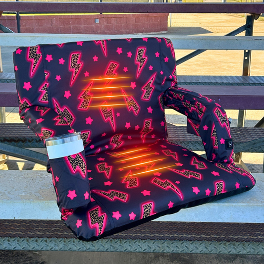 Heated Pink Leopard Lightning Bolts 23" Stadium Seat with Armrests