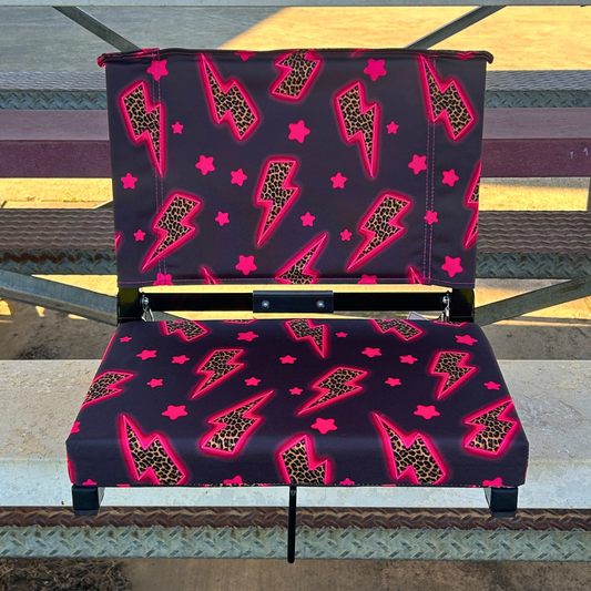 Pink Leopard Lightning Bolts Folding Stadium Seat