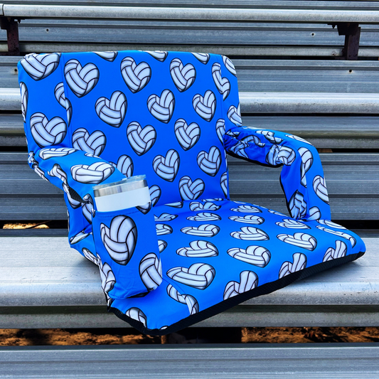 Volleyball Hearts Blue 23" Stadium Seat with Armrests
