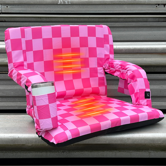 • Heated Pink Checkerboard 23" Stadium Seat with Armrests