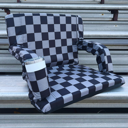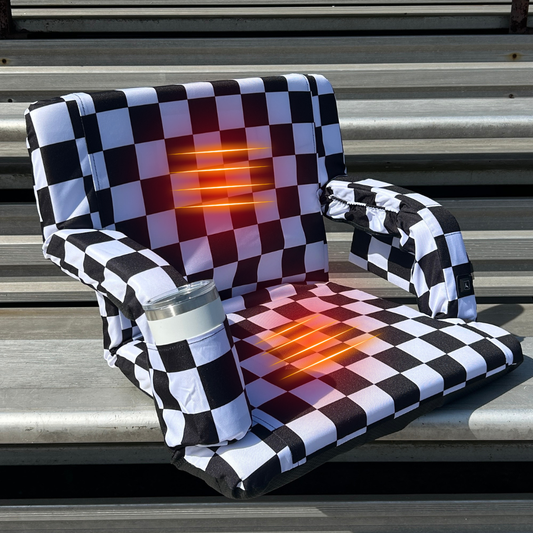 • Heated Black and White Checkerboard 23" Stadium Seat with Armrests