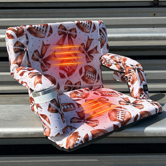 • Heated Footballs & Bows 23" Stadium Seat with Armrests