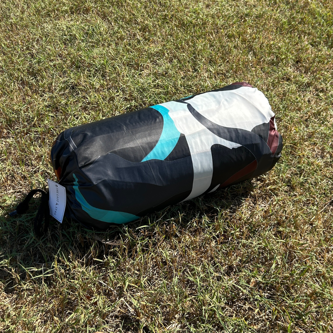 It doubles as a picnic blanket, providing a comfortable spot to sit and relax. The water-repellent material allows you peace of mind when someone spills something on the blanket.