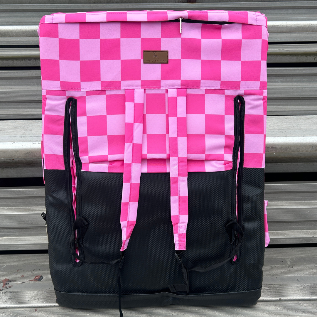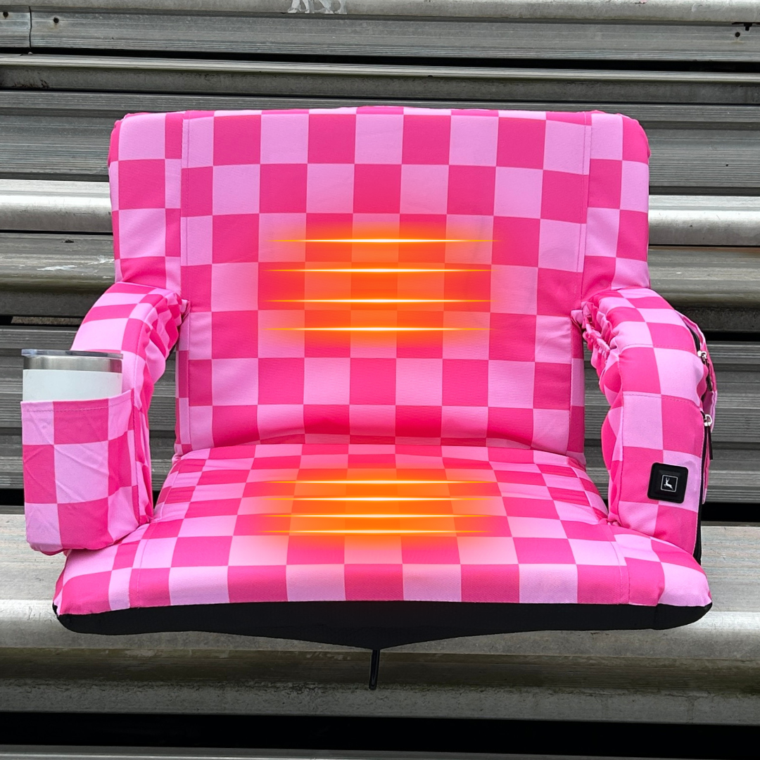 Heated Pink Checkerboard 23" Stadium Seat with Armrests