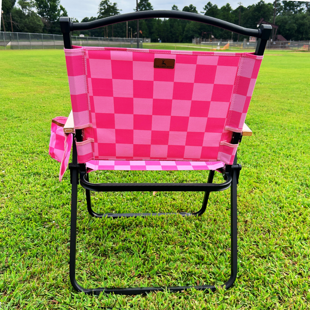 Pink Checkerboard Folding Lawn Chair