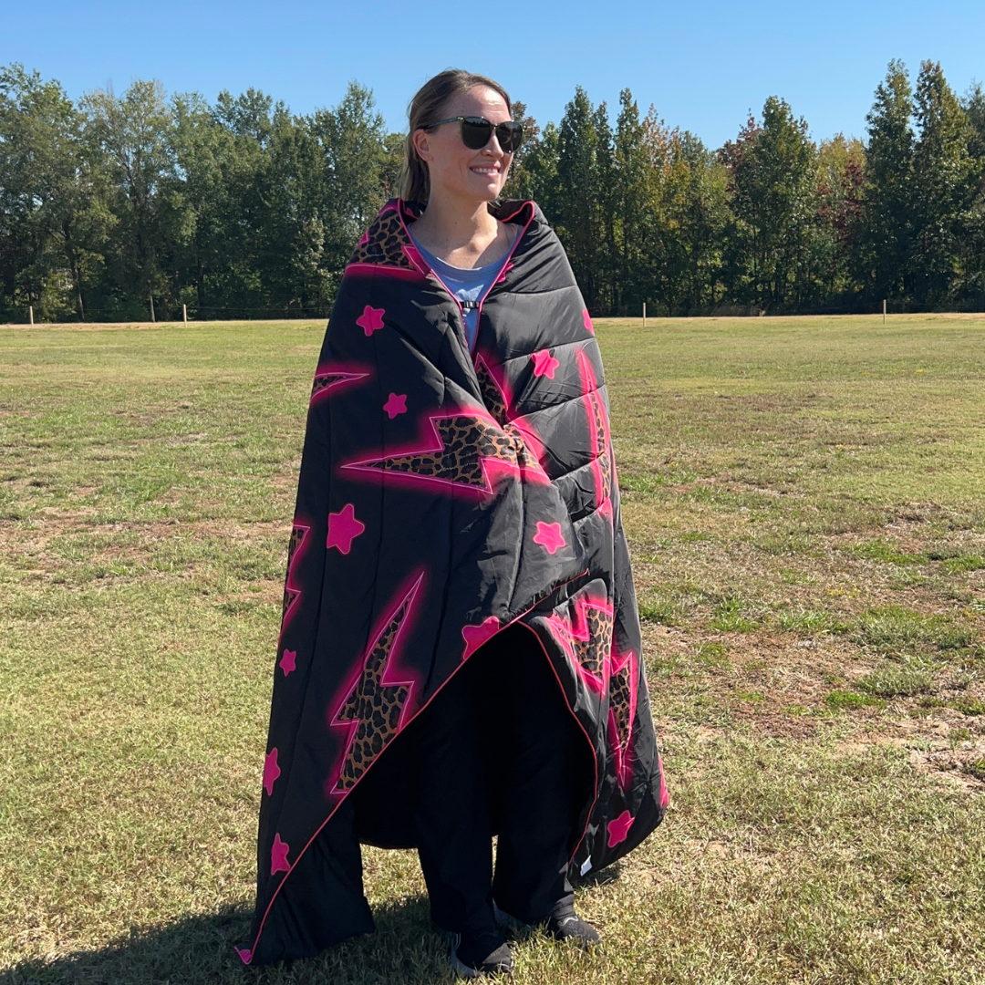 Pink Leopard Lightning Bolts - Indoor/Outdoor Puffy Blanket