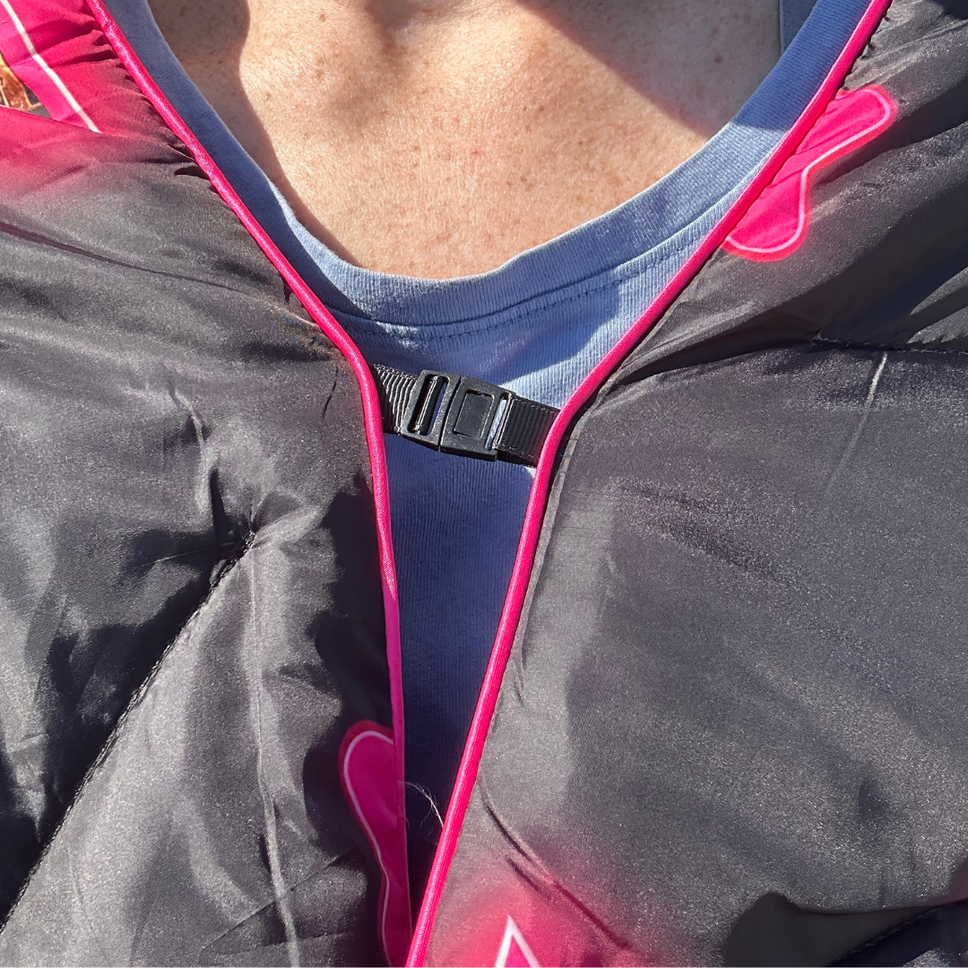 Made with high-quality, water-repellent materials, it's comfortable, durable, and functional. Small clips allow the blanket to be worn so that you can keep your hands free to do other things.