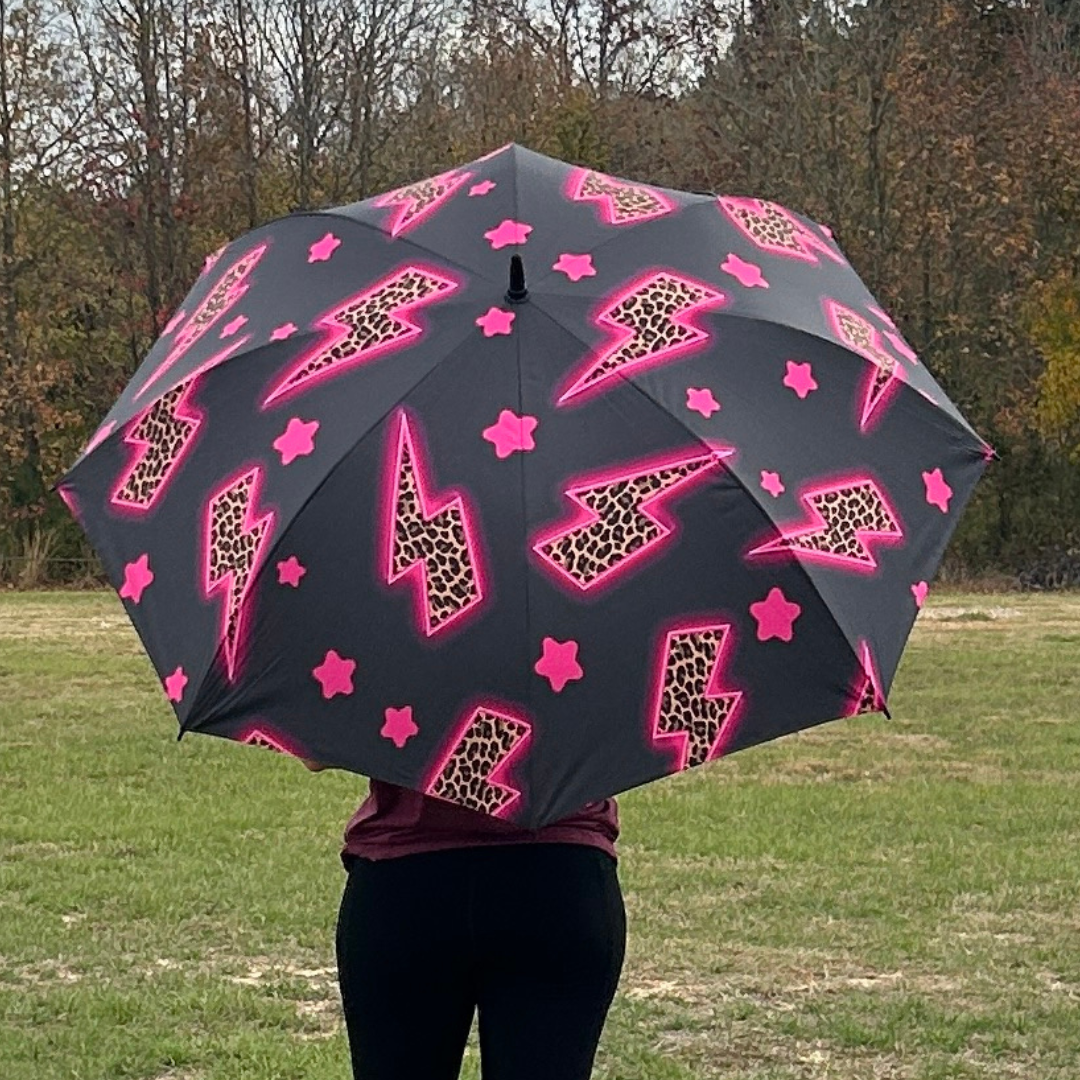 Pink Leopard Lightning Bolts - UPF 50+ Large Golf Umbrella