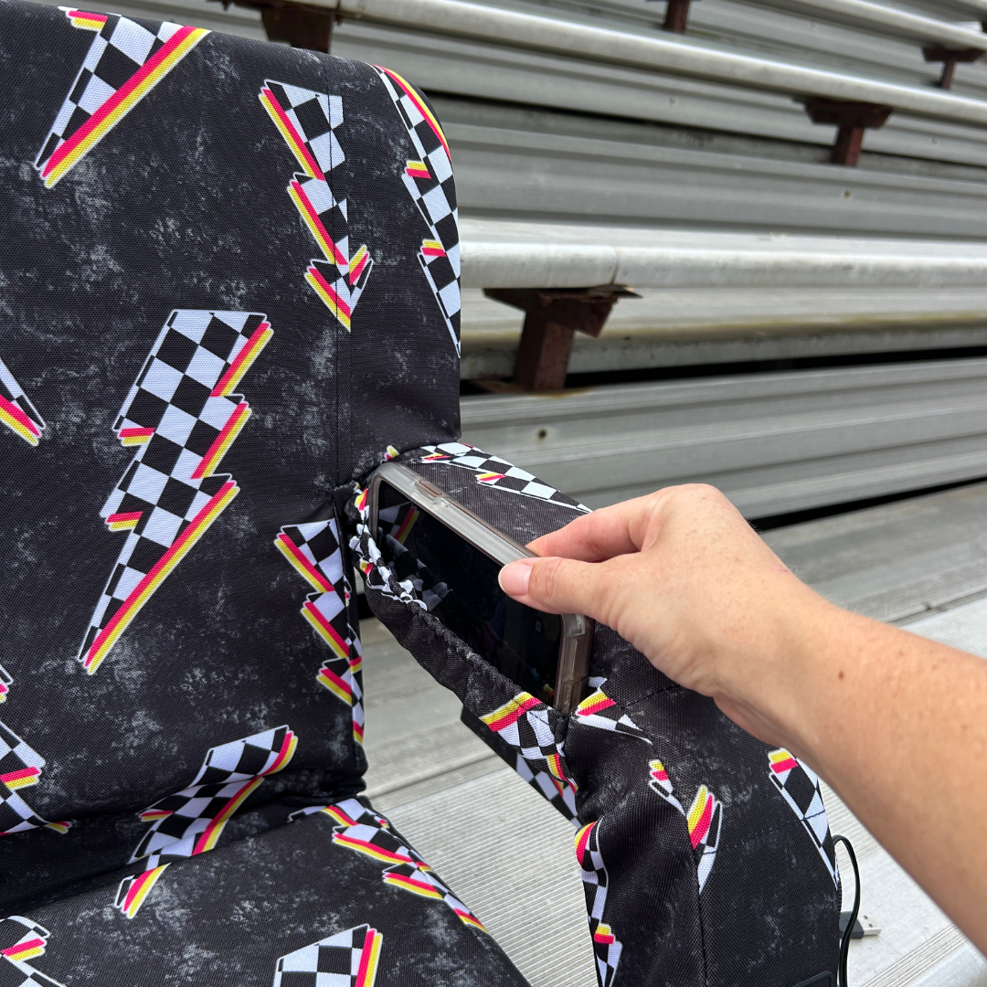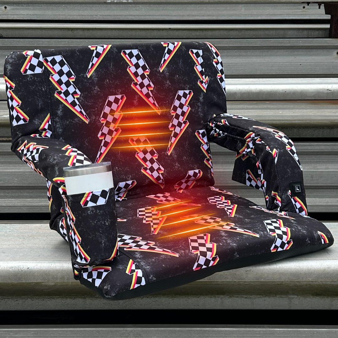 Heated Racing Bolts 23" Stadium Seat with Armrests